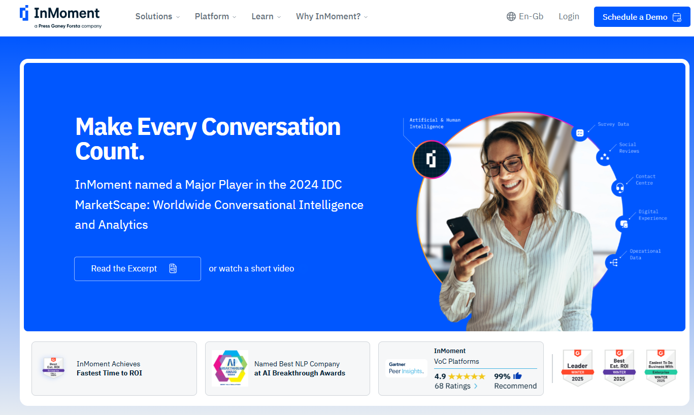 InMoment is a survey-led platform with optional behavioral scoring.