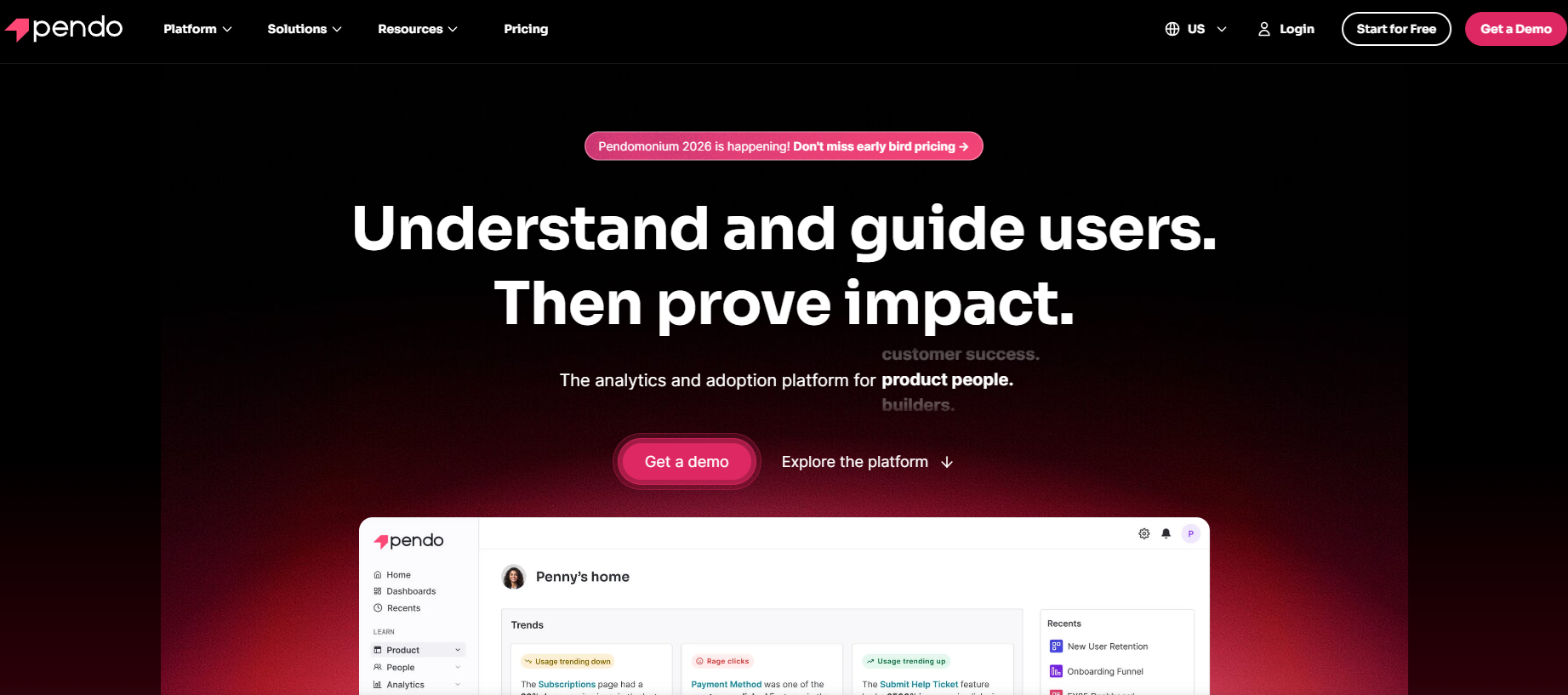 What makes it different: Pendo's churn module reuses existing instrumentation, reducing setup and integration work. It's convenient, but standalone churn tools typically offer deeper scoring and more flexibility if you're evaluating from scratch.