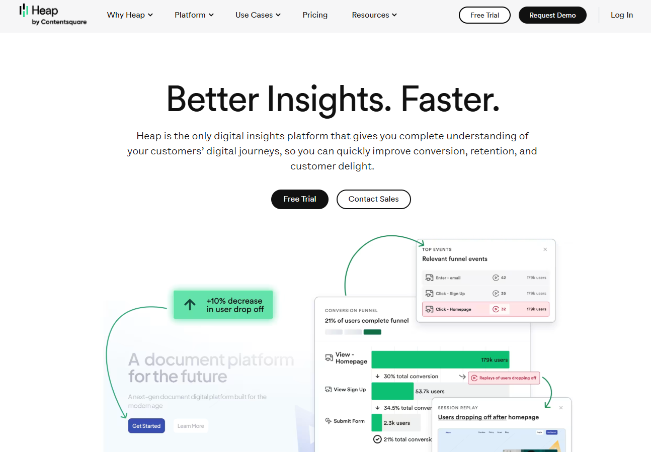 Heap convient mieux aux équipes marketing et e-commerce avec une capacité d'ingénierie limitée qui ont besoin de suivi d'expérience numérique et ne peuvent pas se permettre un travail d'instrumentation continu. Le modèle de Heap fonctionne particulièrement bien pour le comportement sur site web, moins pour les workflows d'application complexes.